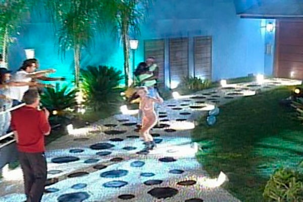 Mas a situação mudou assim que o participante saiu pela porta do confinamento. De repente, uma mulher loira saiu correndo em direção ao centro do palco, ficando completamente nua. A cena durou poucos segundos, mas foi o suficiente para surpreender Bial, que ficou sem reação.