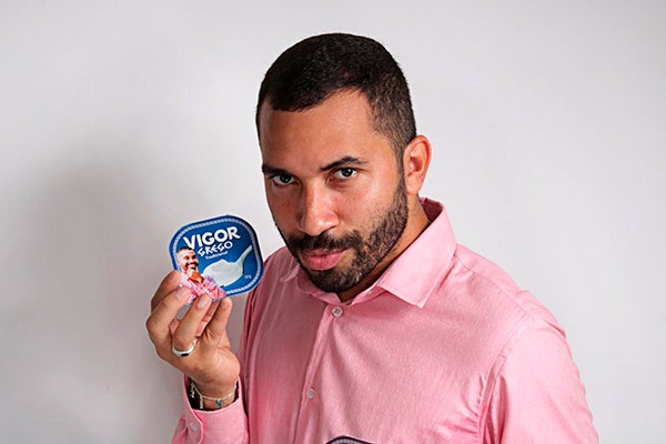 A empresa enviou para ele um kit especial, com direito a iogurtes Vigor Grego personalizados com a sua imagem nas embalagens – uma brincadeira que faz referência a um meme que viralizou nas redes sociais, e que, agora, é uma forma simbólica de celebrar a sua contratação como embaixador. Durante o trabalho, Gil participará da criação de posts e outras peças de comunicação para redes sociais e atuará em parceria com a SunsetDDB, a agência de publicidade da Vigor.