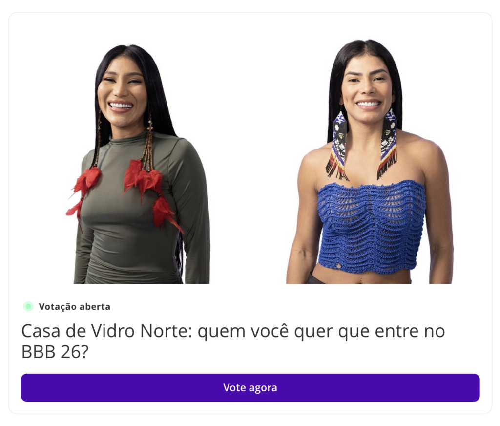 Vale lembrar que, para votar, é necessário ter um cadastro na Conta Globo (que serve para todos os serviços do Grupo Globo).